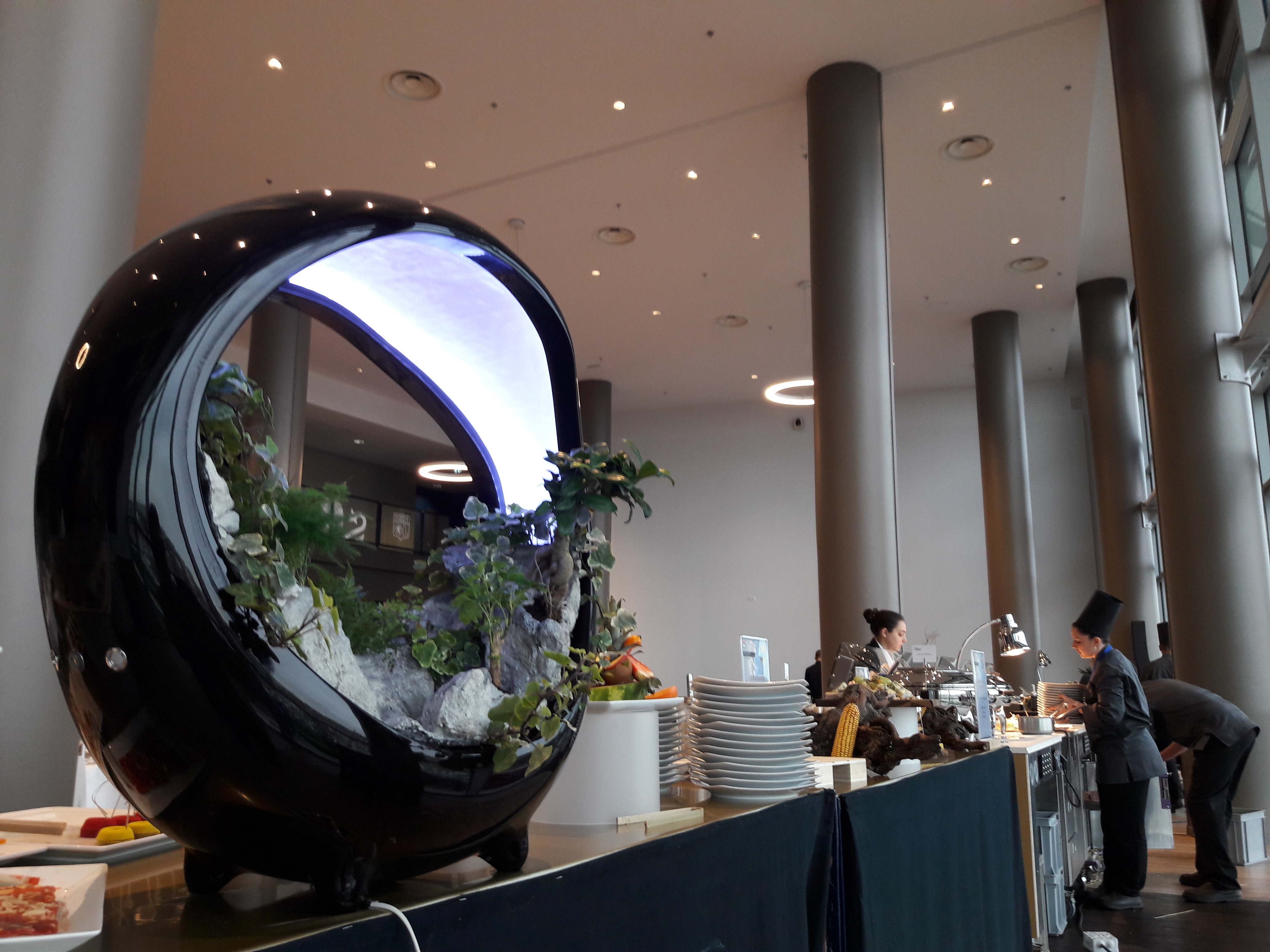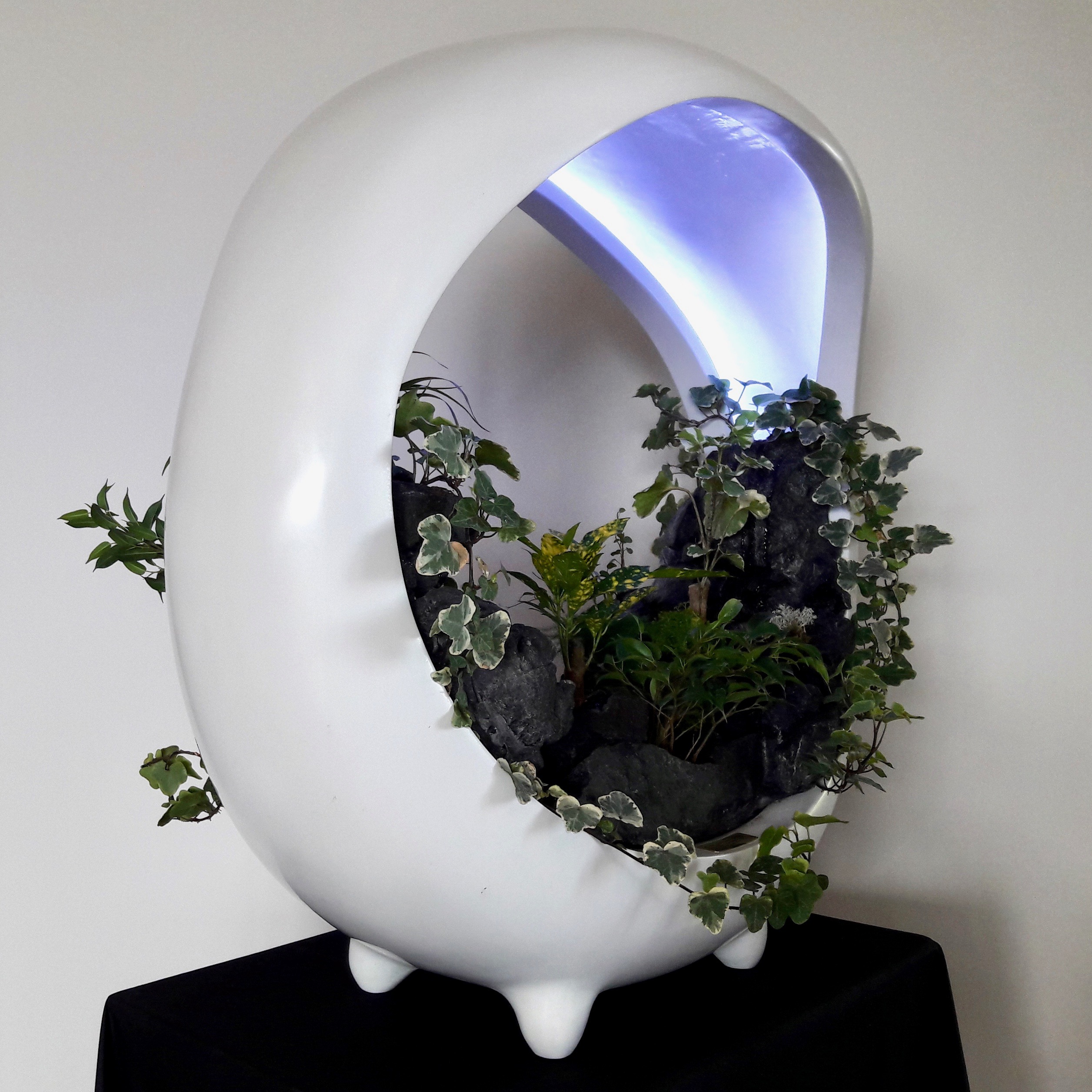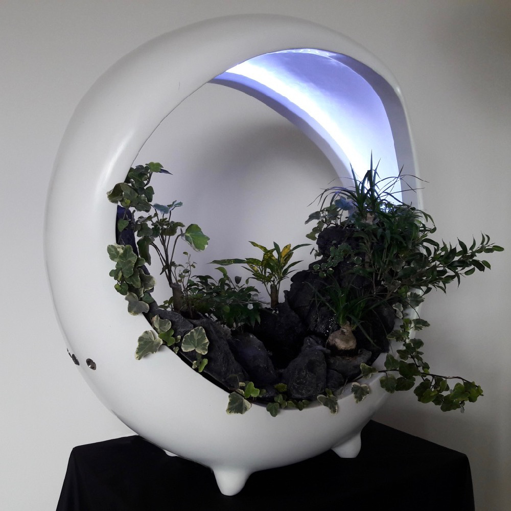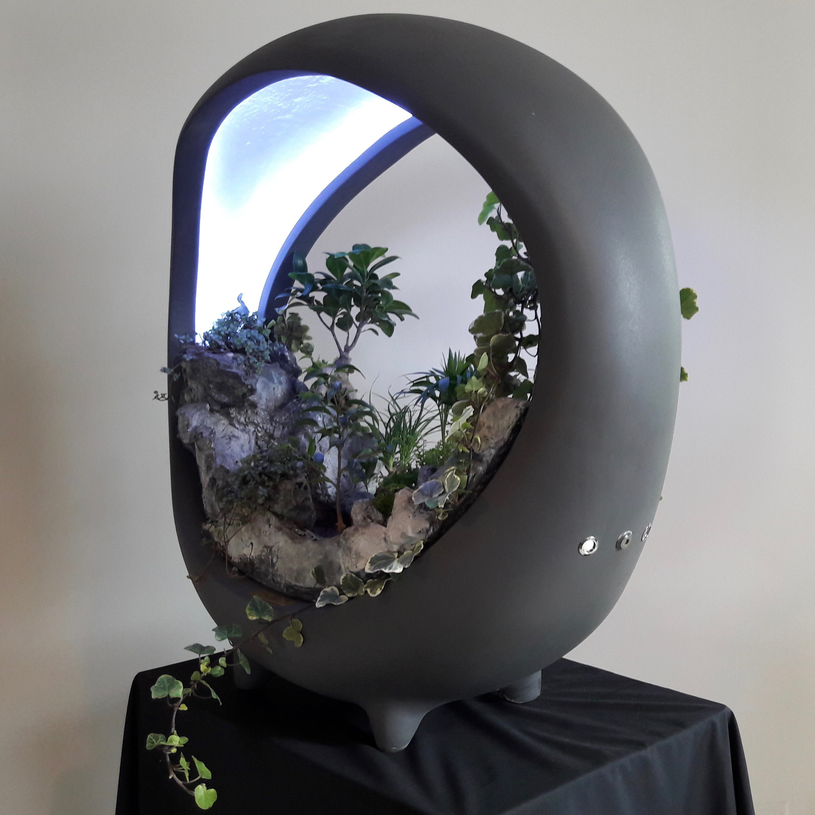 In the spirit of vegetal walls, sumptuous miniature landscape with rivers, lacs, cascades, forest… surrounded by mist